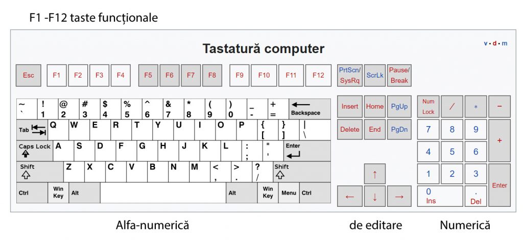 - Taste de editare și funcționale.