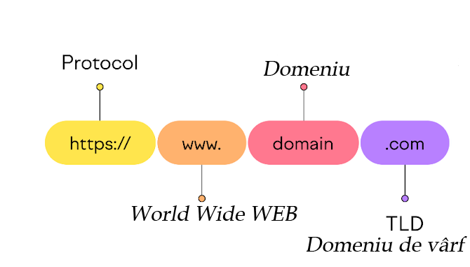 Un site web conține mai multe pagini și se află pe un server de web. WEB înseamnă pânză de păianjen și reprezintă un sistem de informații partajate prin hipertext adică textul paginilor web. Pentru a accesa o pagină web noi folosim un program client denumit browser: (Chrome, Firefox, Brave, Edge etc.) cu care adresăm cereri unui server. O adresă a unui site web se mai numește și U.R.L. (Uniform resource locator) și este formată din: